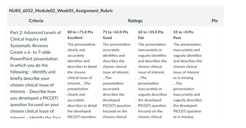 NURS 6052 Module 3 Assignment Rubrics