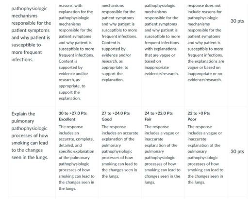 COPD is characterized by chronic inflammation, airflow limitation, and progressive respiratory failure (Agarwal et al., 2023). Michael’s disease presents with typical advanced COPD characteristics, including digital clubbing, dyspnea, decreased breath sounds, and oxygen therapy dependence. His pulmonary function tests reveal a grossly decreased forced vital capacity (FVC) of 48% predicted, grossly impaired gas exchange (DLCO of 35%), and otherwise normal FEV1/FVC ratio. The pathophysiology is secondary to bronchiolar chronic inflammation, alveolar destruction, and hyperproduction of mucus, resulting in airway obstruction and compromised gas exchange.