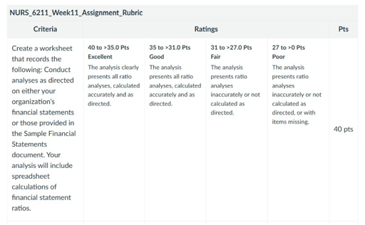 DNUR 6211 Week 10/11 Assignment 6 Rubrics