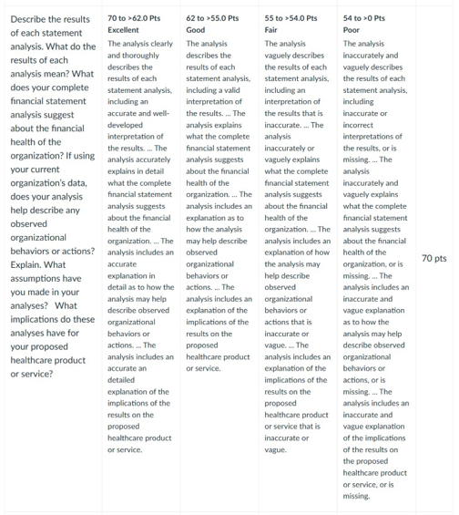 Review the Excel Assignment Workbook, W10/11A6 HealthWays Financials tab. These are sample financial statements.