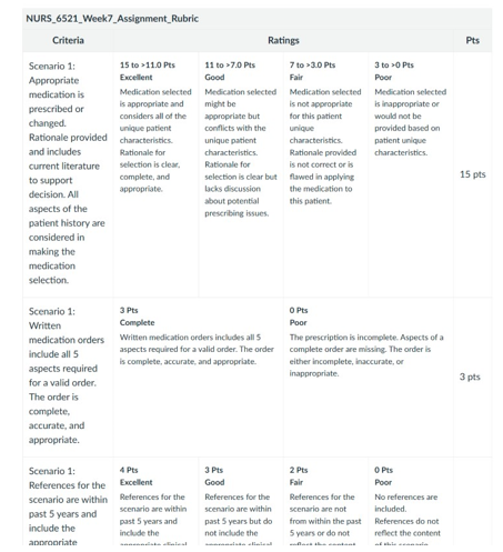 NURS 6521 Week 7 Assignment Rubrics