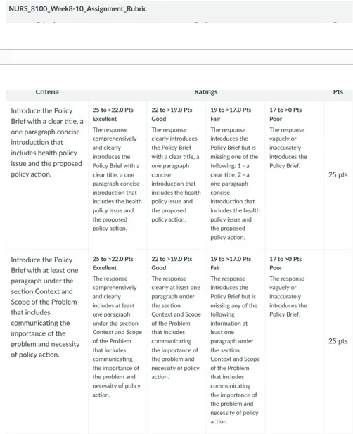 Answer 2: Find the rubrics and instructions for NURS 8100 Week 10 Assignment on Tutors Academy.