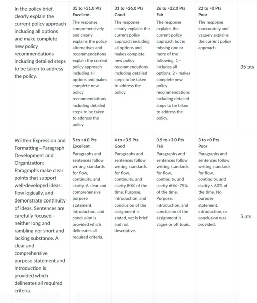 Policy Alternatives: This section discusses the current policy approach and explains proposed options. It should be fair and accurate while convincing the stakeholders why the policy action proposed in the brief is the most desirable.