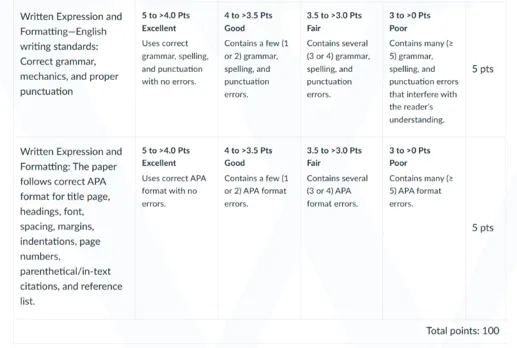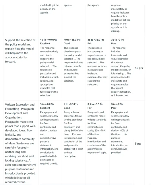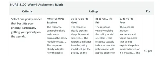 NURS 8100 Week 4 Assignment Rubrics