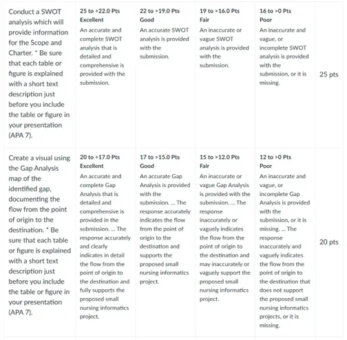 This week, you will finalize your proposed Informatics Project, using all work completed during Weeks 1–5. Be sure that each table or figure is explained with a short text description just before you include the table or figure in your presentation (APA 7).