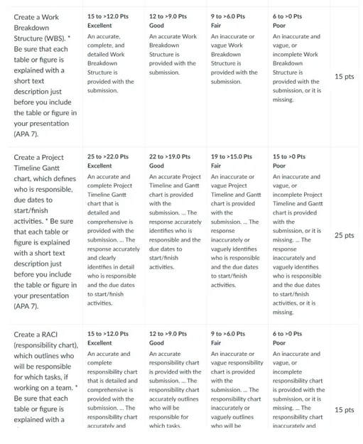 Create a Work Breakdown Structure (WBS) using PowerPoint slides or another method. Be sure to review the media piece, What Is a Work Breakdown Structure? In the Week 3 Learning Resources.